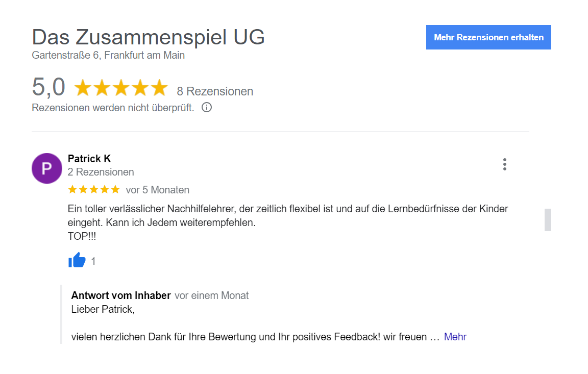Das Zusammenspiel bietet Nachhilfe in verschiedenen Fächern und Altersstufen an. Ob in Mathematik, Deutsch oder Englisch – wir haben das passende Angebot für Sie.
